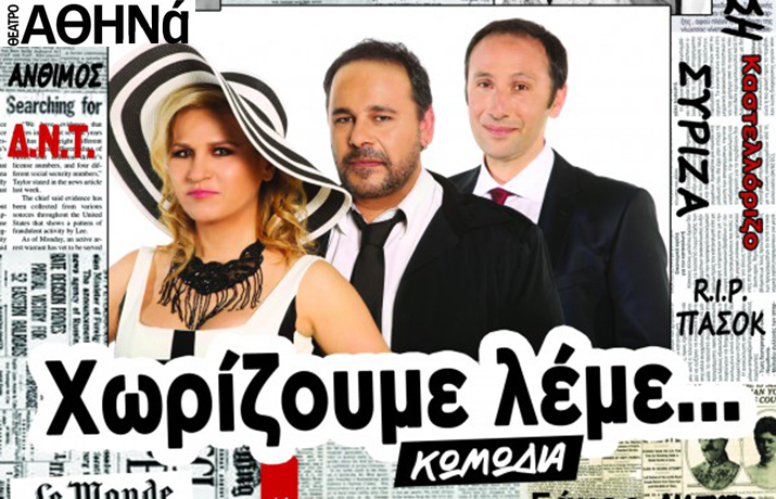 Προσφορά Happy Deals: Χωρίζουμε Λέμε: 12€ από 18€ για είσοδο στη νέα κωμωδία των Ρήγα-Αποστόλου, με τους Ρ.Χαραλαμπίδη, Αλ.Ρήγα, Μπ.Μάλφα κα, στο καλοκαιρινό θέατρο Αθηνά! Η Κωμωδία του Καλοκαιριού!